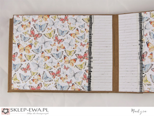 Środek okleiłam tylko papierem i nie ozdabiałam bardziej, ponieważ papiery, które użyłam są bardzo wzorzyste. Gdy będę uzupełniać album zdjęciami to możemy wtedy w środku jeszcze troszkę ozdobię.